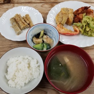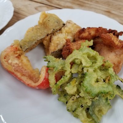 キュウリとゴーヤは会長宅の家庭菜園でとれた新鮮野菜です?
