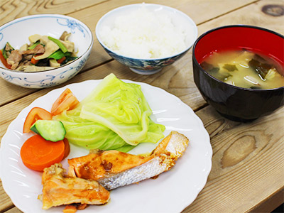HOME > BROOCH飯 > 焼き鮭と祝雷の煮びたし