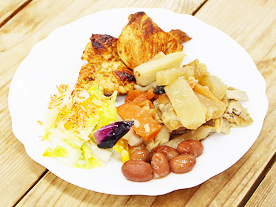 HOME > BROOCH飯 > 鶏肉のソテーと大根と里芋の煮物