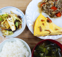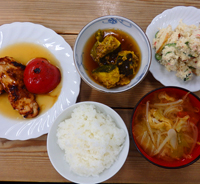 ふわふわ玉子のオムレツ&しめじの煮付け&甘酢サラダ