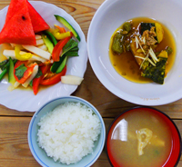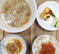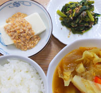 アスパラ菜と魚の和え物&カレー風味ポトフ&工房はたやの豆腐+納豆♪