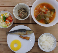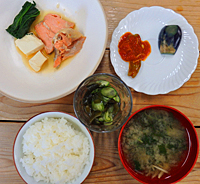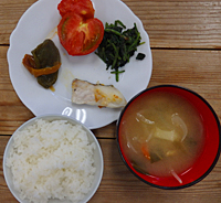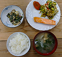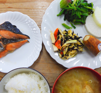 焼き魚&ほうれん草のお浸し&大根の浅漬け&ひじきサラダ&バナナ