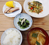 野菜とお肉の揚げ物&オータムポエムの御浸し