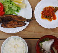 ハタハタの一夜干し&しめじの煮付け&甘酢サラダ&佃煮