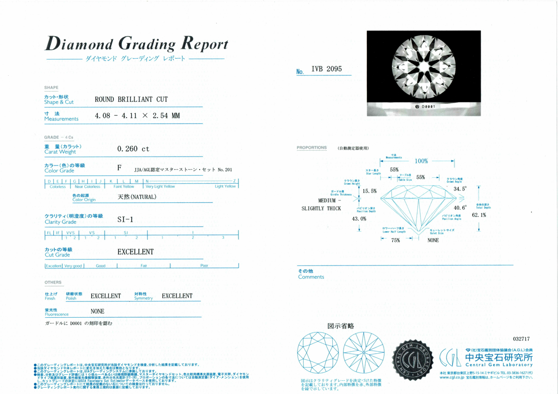 それだけではなくダイヤモンド内部に入射した光は微細な内包物ぶつかると、そこで乱反射したり不要な光の屈折を起こしたりして、ラウンドブリリアントカットダイヤモンド本来の輝きからは程遠い輝きになってしまう事も・・・