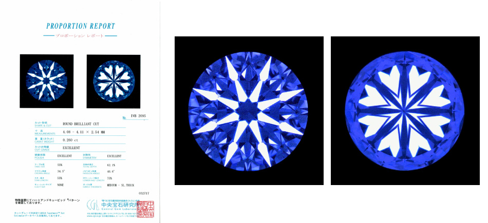 中央宝石研究所ではハート&キューピッドのレポートをダイヤモンドの鑑定書につけるサービスも行っています。
