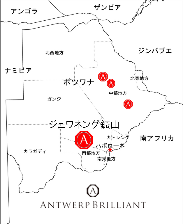 中でもボツワナは最大の拠点がありボツワナ政府とデビアスの合弁企業デブスワナ(Debswana)はデビアスグループの旗艦拠点となっています。
