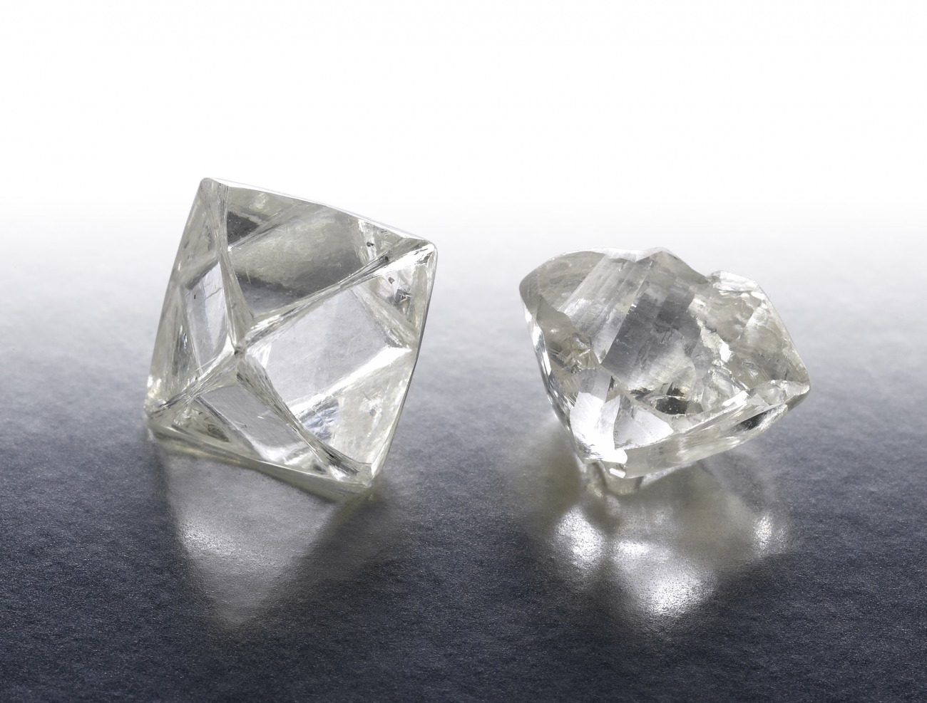 1次鉱床から産出するダイヤモンドにはそれ迄の2次鉱床では無かった特徴を持っていました。それはダイヤモンド原石の輪郭がそのまましっかりと残った状態で採掘された事です。2次鉱床では無くなってしまっていたダイヤモンド原石の角が残った状態で産出したのです。これによりダイヤモンドには同じ等軸状でも6面、8面、12面の大きく三つの形状が有る事が判明し、劈開の方向も見定めやすくなったのです。