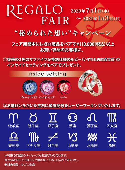 この度、REGALOではお二人の幸せを願ってレガロキャンペーンを開催致します!