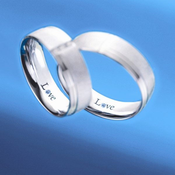 リング内側にブルーダイヤモンドを「LOVE」の文字と共にセッティング