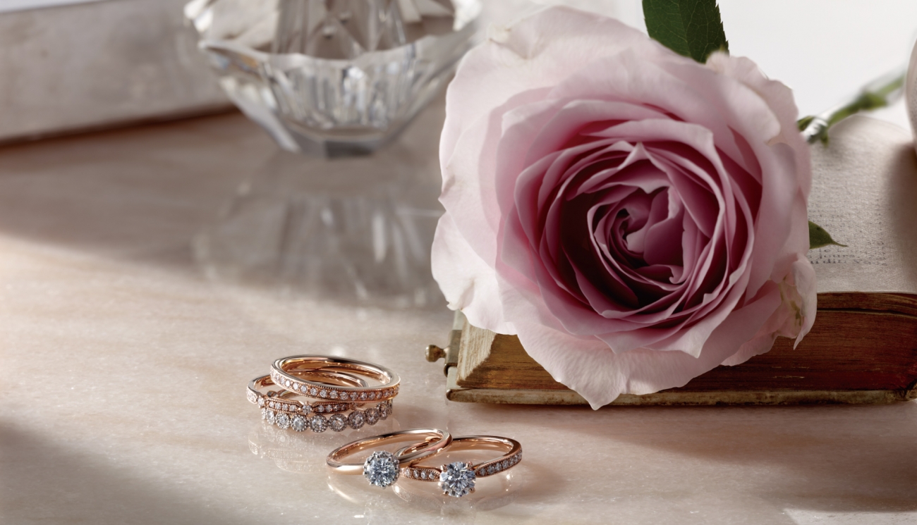 幸せを象徴する「ローズ」をモチーフにした「ローズクラシック」シリーズです。長く愛される「アンティーク」の風合いと、華美のならない繊細な作りの美しさをブライダルに再現したデザインが魅力のブランドです。「ローズ」をテーマにしているので店頭サンプルもほぼピンクゴールドでご用意しております。