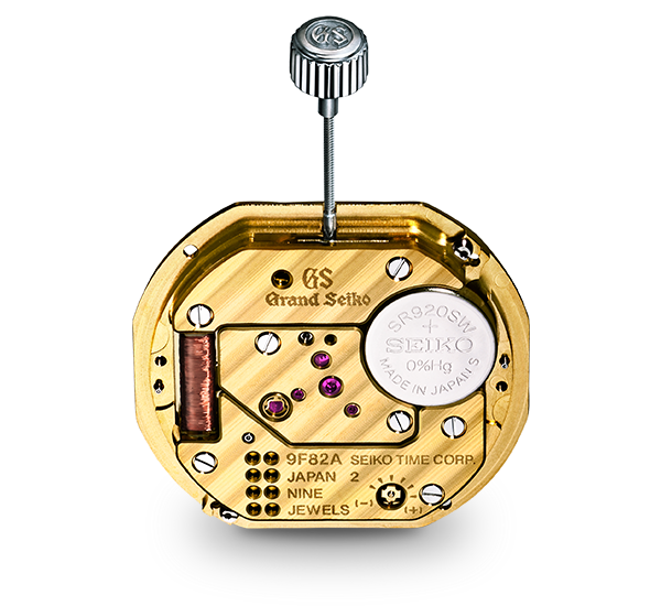 グランドセイコーのクオーツムーブメントは「9Fクオーツムーブメント」を使用しています。「9Fクオーツムーブメント」はクオーツを超えるために、開発されたクオーツです。電池を動力源に水晶振動子を1秒間に32,768回振り動かし、そのエネルギーで時を刻む9Fクオーツムーブメント。そこには、それまでのクオーツ式時計では考えられなかった数々のイノベーションが組み込まれています。