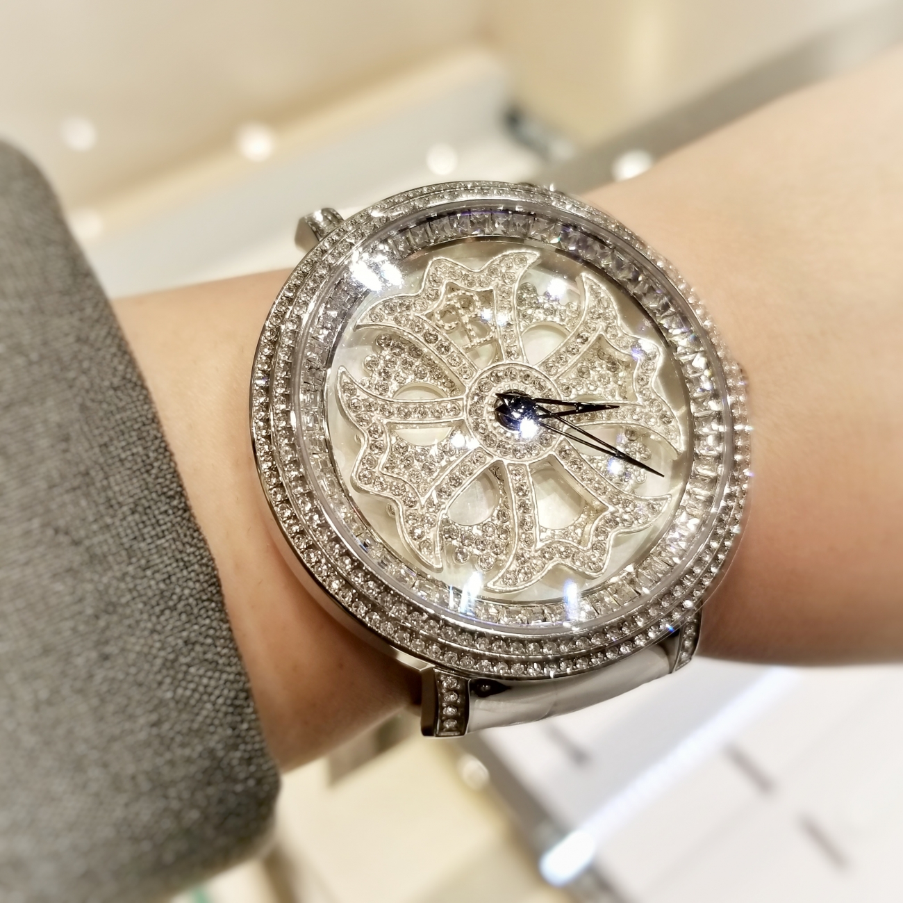 ダイアルに11粒のトップウェッセルトンダイヤモンドをセッティング