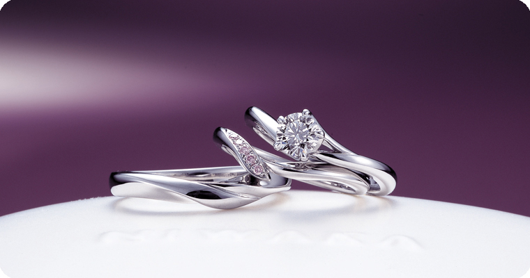 コンセプトは、光り輝く海と青く澄んだ空のように、目の前に広がるふたりの未来。 その穏やかな海辺に吹く風をイメージした 美しいブライダルリングです。 細部まで高い完成度を誇り、ふたりの生涯に寄り添います。