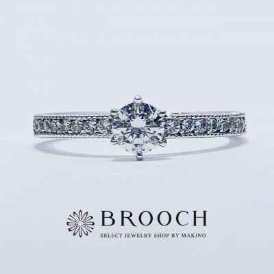 BROOCH 婚約指輪 エンゲージリング シンプル両サイドメレ