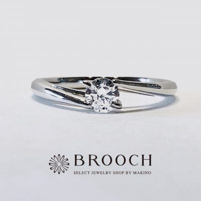 BROOCH 婚約指輪 エンゲージリング シンプル1石ウェーブデザイン