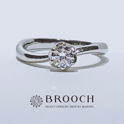 BROOCH 婚約指輪 エンゲージリング シンプル1石ウェーブフラワーデザイン