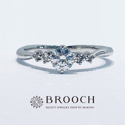 BROOCH 婚約指輪 エンゲージリング ウェーブ両サイドメレ