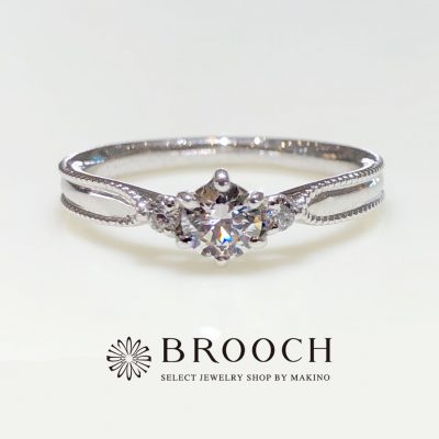 BROOCH 婚約指輪 エンゲージリング 両サイドメレミル打ちデザイン