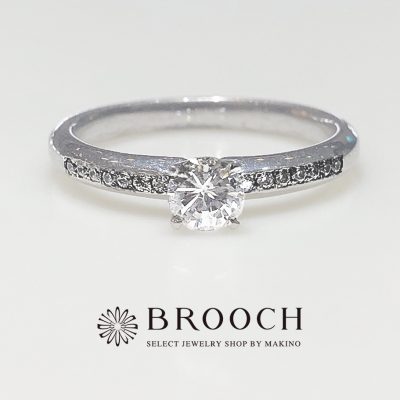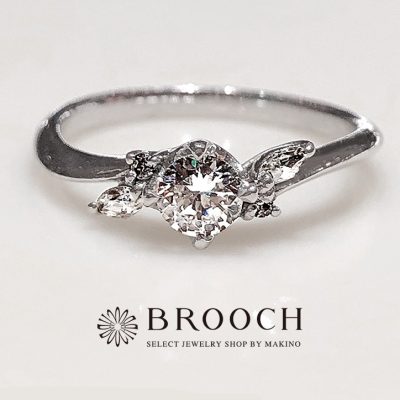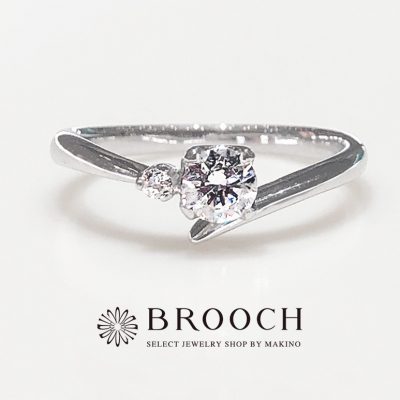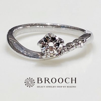 BROOCH 婚約指輪 エンゲージリング センターダイヤ片側メレウェーブデザイン