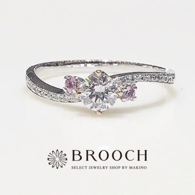BROOCH 婚約指輪 エンゲージリング 両サイドピンクメレダイヤウェーブデザイン