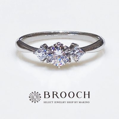 BROOCH 婚約指輪 エンゲージリング 両サイドスクエア型メレダイヤデザイン
