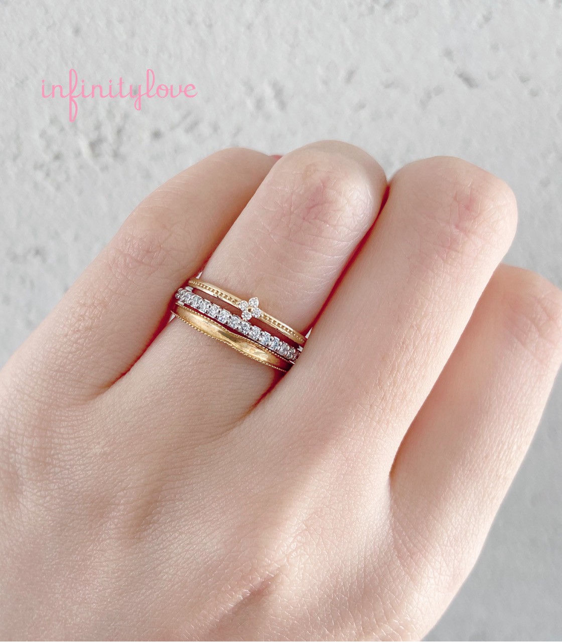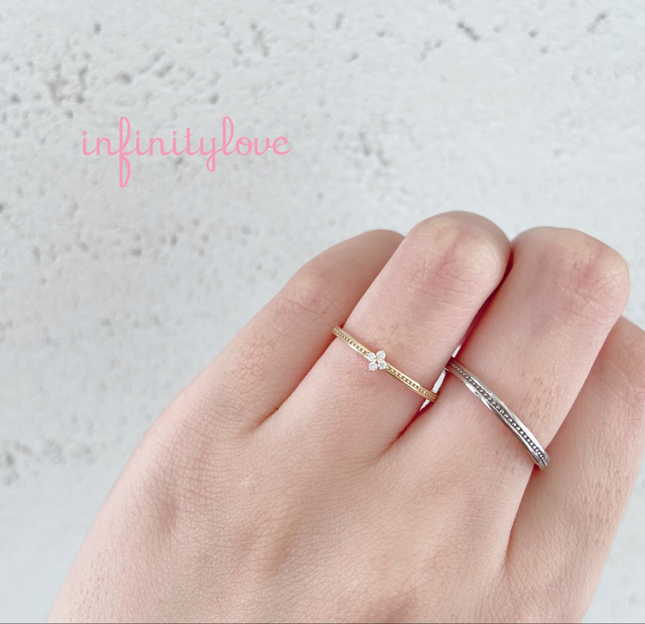 ブランド名のインフィニティラブ(infinity love)は主に『無限大の愛』という意味で、それぞれのリングデザインには永遠や可能性・愛の絆という意味を持たせたテーマで描いています。