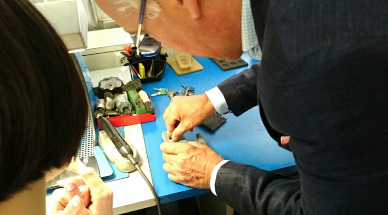 スイス(シャフハウゼン)ではこのような若い職人さんを育てるために、会社、学校、地域が一体となって人を育てる仕組みを作り、現在も貴金属製品の制作技術と規格を守り続けています。