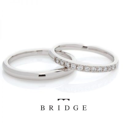 お互いを愛おしく思う優しい気持ちを、細身のリングで表現しています。細く連なるメレダイヤモンドは、可憐な女性の指によく映えます。ダイアモンドラインで可憐な花のようなデザインに仕上がっています。女性の指に美しく映えます。細いストレートラインですが、職人によって磨き上げられたダイヤモンドが美しい輝きを放ちます。お互いを愛おしく思う優しい気持ちが細身のリングで表現されています。