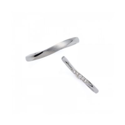 船の航海には昔から人生を重ね合わせて表現される事が多いようです。 穏やかな流れを進む二人の船を婚約リングに、船と水面の喫水線を輝くダ イヤモンドで表現した女性用結婚指輪に男性用は船を”輝かしい未来へと”運 ぶ”流れ”をデザインしています。 2人の人生の船出が輝かしい未来へ導かれ素晴らしいものであるようにという想いが込められているのです。ロマンチックで素敵ですよね!!
