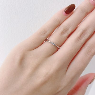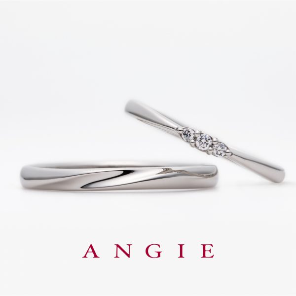 メンズの陰影のあるラインが、シンプルストレートにアクセントを加えます。ダイヤモンドに向かって絞られたデザインのレディースは、シャープで洗練された印象に。運命数7のsieteが、おふたりの明るい未来に、新たな閃きを沢山与えるでしょう。 - (左)