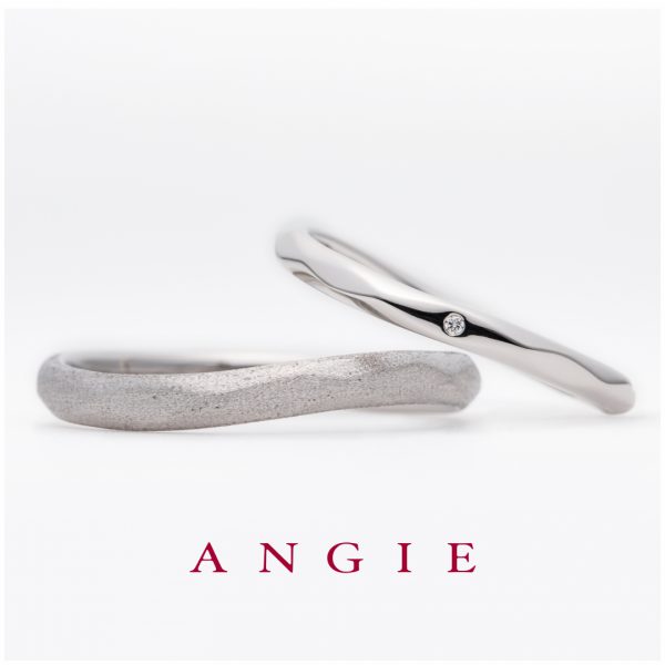 緩やかなウェーブラインに、カットが様々に反射し、高級感をもたらします。メンズはつや消し、レディースはグロス仕上げですが、同じカッティングが入ることで、ペア感がしっかりあるのもポイント。おふたりの結婚の決意の証として、運命数5のcincoで、いつまでも情熱的な気持ちを胸に。 - (左)