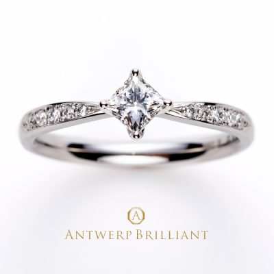 最高グレード トリプルエクセレントのプリンセスカットを配したエタニティリングです。プリンセスカットはレール留めするために1977年に”イスラエルイツコウイッツ氏”によって開発された特別な四角いブリリアントカット。ステップとブリリアントの融合した世界で初めてのハイブリットカットダイヤモンドでした。アントワープブリリアントで使用するのはこのうち最高グレードのトリプルエクセレントだけ。