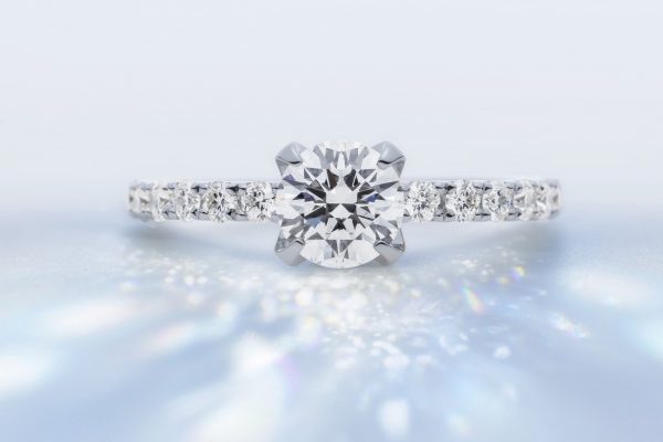 華やかなヘイローデザインは使う方の魅力も広げます。 - エンゲージリング(婚約指輪)
