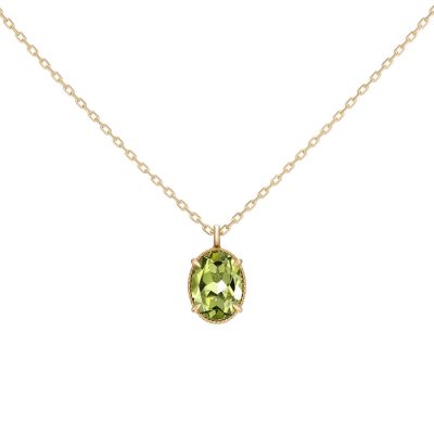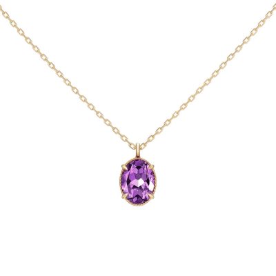オーバルシェイプのカラーストーンと、石の周りを囲む丸い粒「ミル打ち」の組み合わせがクラシカルな印象。