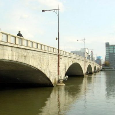 連続アーチの眼鏡橋が水面に映った様を表現しています。橋と川はまさに一対、そこに川があるから橋が架けられ、橋があるから川がある。結婚は男性女性二つが一対にそろって初めて成り立つのです。水面に鏡写しになった互いの気持ちは『悩める時』『貧しき時』『富める時』色々な時にも共有して、互いを思い合うのが夫婦です。モチーフとなった不落橋“万代橋”にインスパイアされた、決して揺るがない『千年の想い』を表現しています。