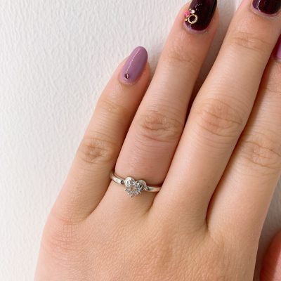 シンプル1石タイプのエンゲージリングですが、枠がハートの形をしているのでとても可愛らしいデザインとなっております。