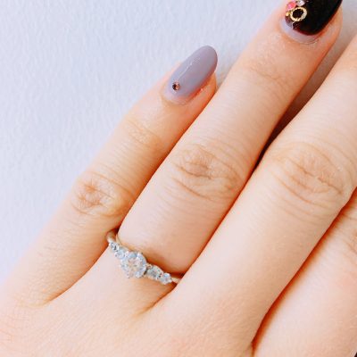 両サイドにメレダイヤモンドが2石ずつセッティングされております。