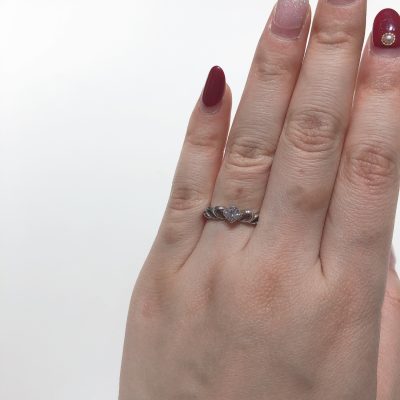 ダイヤモンド1石をセッティングしたエンゲージリング。まるでプリンセスが身に着けるティアラのような、丸く可愛らしいデザイン。指先をとっても華やかに演出してくれます。