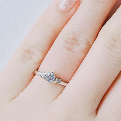BROOCH 婚約指輪 エンゲージリング ウェーブ両サイドメレ