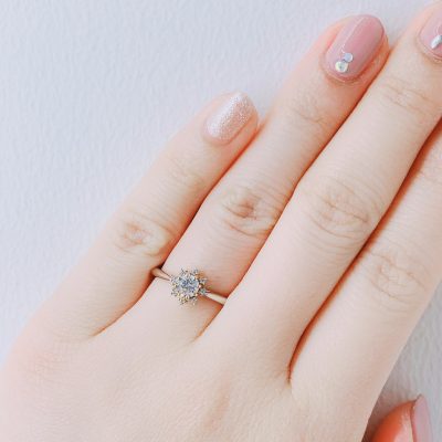太陽をイメージしたデザイン。シンプルながらも可愛らしい印象のエンゲージリングです。
