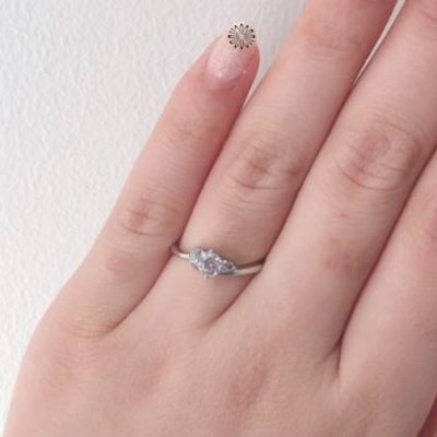 シンプルなメレダイヤ1石と、サイドにサークルを描くようなダイヤラインのアレンジが特徴的なデザイン。シンプルながらも主張しすぎない華やかさを兼ね備えたエンゲージリングです。