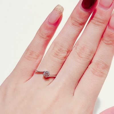 5点留めのセンターダイヤモンドと、それを包み込むような細めのウェーブデザイン。優しく柔らかな雰囲気を醸し出します。