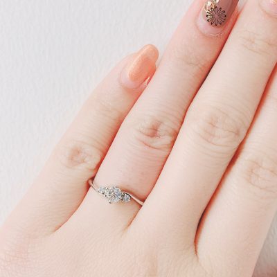 BROOCH 婚約指輪 エンゲージリング かわいい ウェーブ両サイドメレ