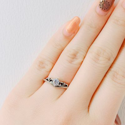 ティアラみたいなデザインのエンゲージリング。