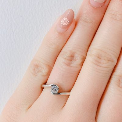 シンプルなダイヤモンド1石のウェーブデザイン。