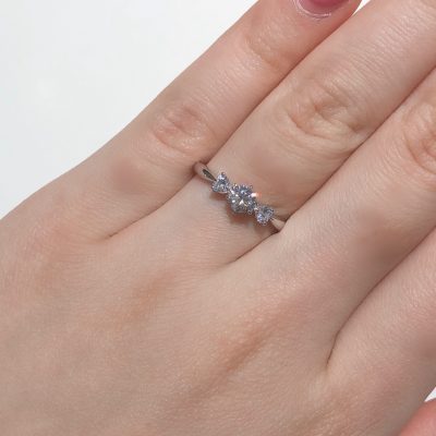 その両側にセッティングされたハート型のダイヤモンドが可愛らしい雰囲気を演出してくれるデザインです。