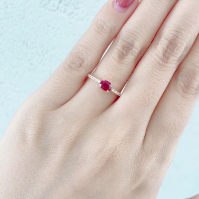 情熱的な赤色が美しいルビーは婚約指輪でも人気の宝石です。ファンシーズではシンプルなダイヤモンドラインにルビーをセッティングしてエンゲージリングとしてデザインしました。