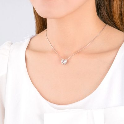 ハートがかわいらしい王道デザイン。”やさしくときめく乙女心”をイメージしたネックレスは、クリスマスプレゼントや誕生日プレゼントにぴったり。キラキラと煌めくセンターストーンがより一層記念日を盛り上げます。