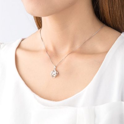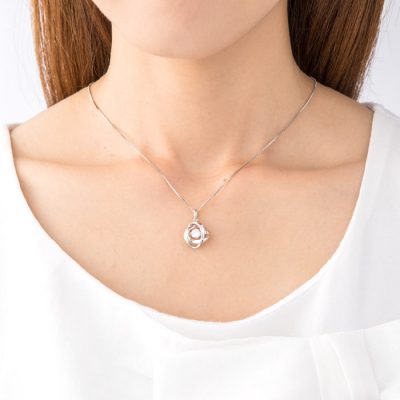 途切れることのない独特なフォルムがオシャレ。ゆれて煌めくセンターストーンが、さらにエレガントさを表現。ピアスとセットでそろえるのもオススメです。